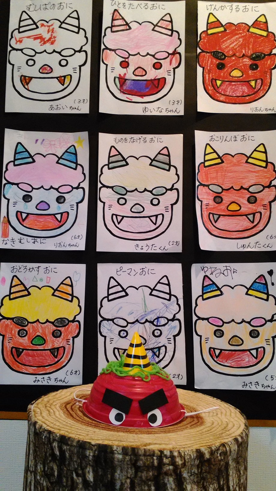 2月の節分・3月ひな祭りの製作あそびとして、鬼のぼうし、ぬりえ、お雛さまの壁掛け・春を呼ぶ鳥作り を行いました。