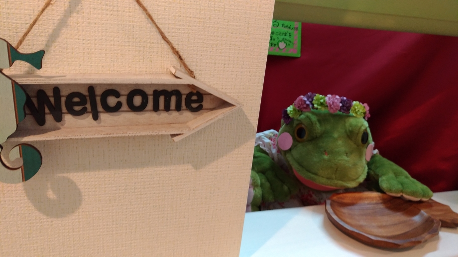 7月1日 おむかえるちゃんが受付のお仕事を開始しました。 キッズのおともだち専用の窓口に朝9:30~夕方6:00までおります~! 「かわい~」「また会いた~い」とひそかに人気上昇中です