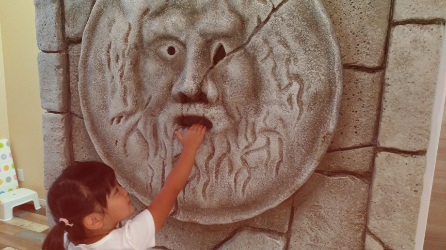 偽りの心がある者は この彫刻の口に手を入れると抜けなくなるという伝説があります。