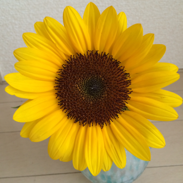 真夏の太陽のような明るいオレンジ色の花弁の向日葵は、サンリッチオレンジという品種です。