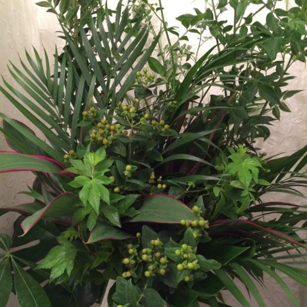 【今週の花材】ソケイアレカヤシ木苺モンステラドラセナヒペリカム