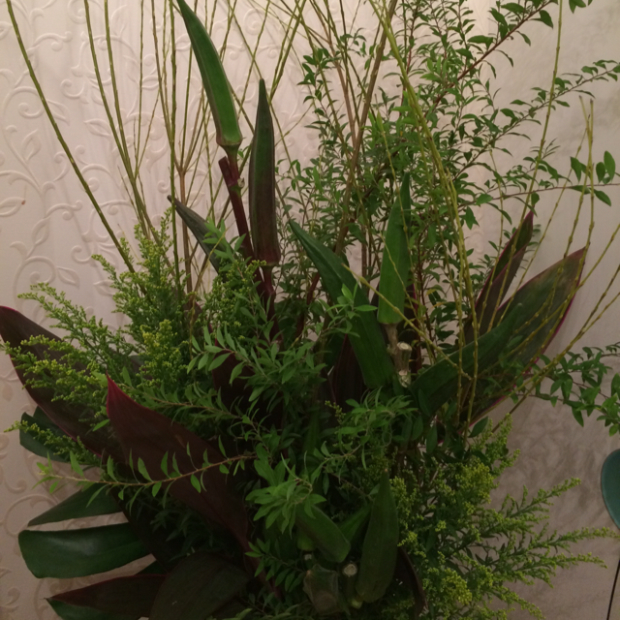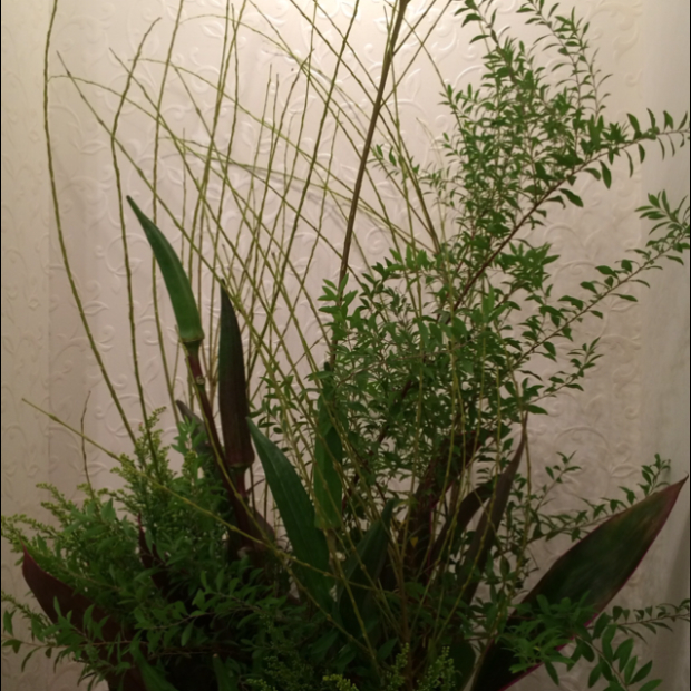 みなさん、こんにちは。 見沼区春岡 もちづき歯科 歯科医師の後藤です。 【今週の花材】 ドラセナ ソリダコ オクラ 雪柳 行李柳 行李柳は、皮を剥いて柳行李を作るのに使われます。材料に製品の名前がついている植物は、珍しいですね。